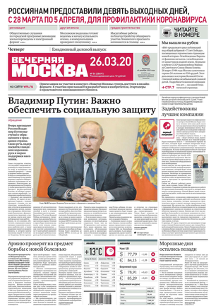 «Вечерняя Москва» — ежедневная российская вечерняя газета, старейшее из вечерних изданий в России, учрежденное в 1923 году. Выходит пять дней в неделю, кроме субботы и воскресенья. Отличается тем, что рассказывает о событиях еще не завершившегося дня. Оперативно освещает хронику и особенности жизни Москвы, охватывает все слои общества и большинство профессиональных и возрастных групп читателей.Издание представлено тремя выпусками – утренним ежедневным, вечерним (выходит три раза в неделю), еженедельным (выходит по четвергам).