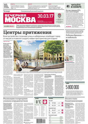 «Вечерняя Москва» — ежедневная российская вечерняя газета, старейшее из вечерних изданий в России, учрежденное в 1923 году. Выходит пять дней в неделю, кроме субботы и воскресенья. Отличается тем, что рассказывает о событиях еще не завершившегося дня. Оперативно освещает хронику и особенности жизни Москвы, охватывает все слои общества и большинство профессиональных и возрастных групп читателей.Издание представлено тремя выпусками – утренним ежедневным, вечерним (выходит три раза в неделю), еженедельным (выходит по четвергам).