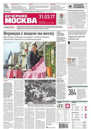 «Вечерняя Москва» — ежедневная российская вечерняя газета, старейшее из вечерних изданий в России, учрежденное в 1923 году. Выходит пять дней в неделю, кроме субботы и воскресенья. Отличается тем, что рассказывает о событиях еще не завершившегося дня. Оперативно освещает хронику и особенности жизни Москвы, охватывает все слои общества и большинство профессиональных и возрастных групп читателей.Издание представлено тремя выпусками – утренним ежедневным, вечерним (выходит три раза в неделю), еженедельным (выходит по четвергам).