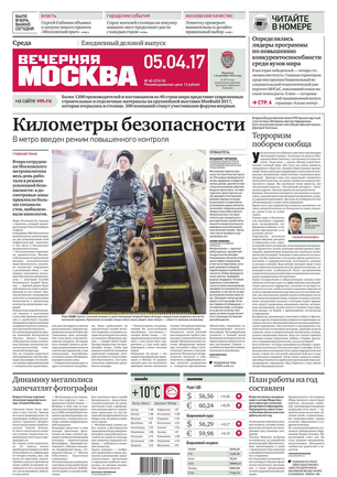 «Вечерняя Москва» — ежедневная российская вечерняя газета, старейшее из вечерних изданий в России, учрежденное в 1923 году. Выходит пять дней в неделю, кроме субботы и воскресенья. Отличается тем, что рассказывает о событиях еще не завершившегося дня. Оперативно освещает хронику и особенности жизни Москвы, охватывает все слои общества и большинство профессиональных и возрастных групп читателей.Издание представлено тремя выпусками – утренним ежедневным, вечерним (выходит три раза в неделю), еженедельным (выходит по четвергам).