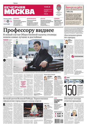 «Вечерняя Москва» — ежедневная российская вечерняя газета, старейшее из вечерних изданий в России, учрежденное в 1923 году. Выходит пять дней в неделю, кроме субботы и воскресенья. Отличается тем, что рассказывает о событиях еще не завершившегося дня. Оперативно освещает хронику и особенности жизни Москвы, охватывает все слои общества и большинство профессиональных и возрастных групп читателей.Издание представлено тремя выпусками – утренним ежедневным, вечерним (выходит три раза в неделю), еженедельным (выходит по четвергам).