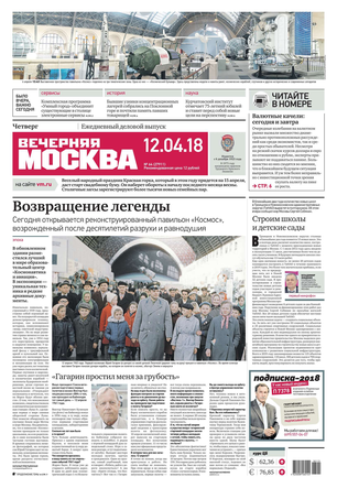 «Вечерняя Москва» — ежедневная российская вечерняя газета, старейшее из вечерних изданий в России, учрежденное в 1923 году. Выходит пять дней в неделю, кроме субботы и воскресенья. Отличается тем, что рассказывает о событиях еще не завершившегося дня. Оперативно освещает хронику и особенности жизни Москвы, охватывает все слои общества и большинство профессиональных и возрастных групп читателей.Издание представлено тремя выпусками – утренним ежедневным, вечерним (выходит три раза в неделю), еженедельным (выходит по четвергам).