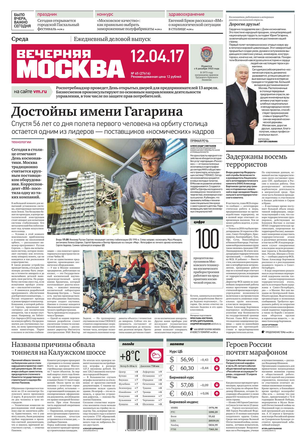 «Вечерняя Москва» — ежедневная российская вечерняя газета, старейшее из вечерних изданий в России, учрежденное в 1923 году. Выходит пять дней в неделю, кроме субботы и воскресенья. Отличается тем, что рассказывает о событиях еще не завершившегося дня. Оперативно освещает хронику и особенности жизни Москвы, охватывает все слои общества и большинство профессиональных и возрастных групп читателей.Издание представлено тремя выпусками – утренним ежедневным, вечерним (выходит три раза в неделю), еженедельным (выходит по четвергам).