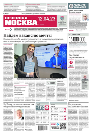 «Вечерняя Москва» — ежедневная российская вечерняя газета, старейшее из вечерних изданий в России, учрежденное в 1923 году. Выходит пять дней в неделю, кроме субботы и воскресенья. Отличается тем, что рассказывает о событиях еще не завершившегося дня. Оперативно освещает хронику и особенности жизни Москвы, охватывает все слои общества и большинство профессиональных и возрастных групп читателей.Издание представлено тремя выпусками – утренним ежедневным, вечерним (выходит три раза в неделю), еженедельным (выходит по четвергам).