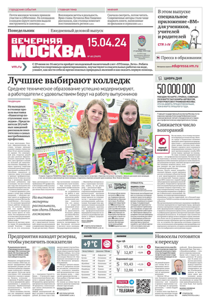 «Вечерняя Москва» — ежедневная российская вечерняя газета, старейшее из вечерних изданий в России, учрежденное в 1923 году. Выходит пять дней в неделю, кроме субботы и воскресенья. Отличается тем, что рассказывает о событиях еще не завершившегося дня. Оперативно освещает хронику и особенности жизни Москвы, охватывает все слои общества и большинство профессиональных и возрастных групп читателей.Издание представлено тремя выпусками – утренним ежедневным, вечерним (выходит три раза в неделю), еженедельным (выходит по четвергам).