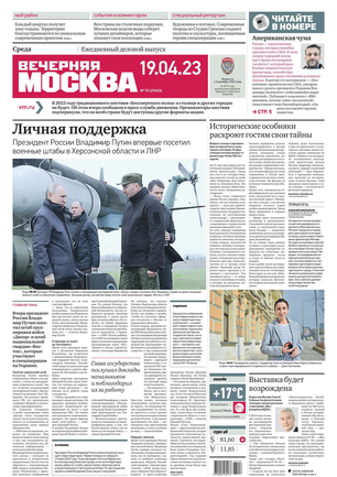 «Вечерняя Москва» — ежедневная российская вечерняя газета, старейшее из вечерних изданий в России, учрежденное в 1923 году. Выходит пять дней в неделю, кроме субботы и воскресенья. Отличается тем, что рассказывает о событиях еще не завершившегося дня. Оперативно освещает хронику и особенности жизни Москвы, охватывает все слои общества и большинство профессиональных и возрастных групп читателей.Издание представлено тремя выпусками – утренним ежедневным, вечерним (выходит три раза в неделю), еженедельным (выходит по четвергам).