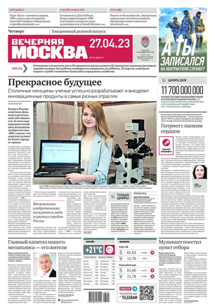 «Вечерняя Москва» — ежедневная российская вечерняя газета, старейшее из вечерних изданий в России, учрежденное в 1923 году. Выходит пять дней в неделю, кроме субботы и воскресенья. Отличается тем, что рассказывает о событиях еще не завершившегося дня. Оперативно освещает хронику и особенности жизни Москвы, охватывает все слои общества и большинство профессиональных и возрастных групп читателей.Издание представлено тремя выпусками – утренним ежедневным, вечерним (выходит три раза в неделю), еженедельным (выходит по четвергам).