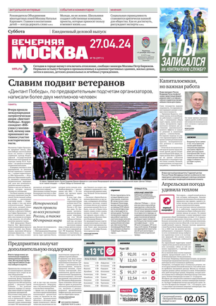 «Вечерняя Москва» — ежедневная российская вечерняя газета, старейшее из вечерних изданий в России, учрежденное в 1923 году. Выходит пять дней в неделю, кроме субботы и воскресенья. Отличается тем, что рассказывает о событиях еще не завершившегося дня. Оперативно освещает хронику и особенности жизни Москвы, охватывает все слои общества и большинство профессиональных и возрастных групп читателей.Издание представлено тремя выпусками – утренним ежедневным, вечерним (выходит три раза в неделю), еженедельным (выходит по четвергам).
