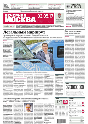 «Вечерняя Москва» — ежедневная российская вечерняя газета, старейшее из вечерних изданий в России, учрежденное в 1923 году. Выходит пять дней в неделю, кроме субботы и воскресенья. Отличается тем, что рассказывает о событиях еще не завершившегося дня. Оперативно освещает хронику и особенности жизни Москвы, охватывает все слои общества и большинство профессиональных и возрастных групп читателей.Издание представлено тремя выпусками – утренним ежедневным, вечерним (выходит три раза в неделю), еженедельным (выходит по четвергам).