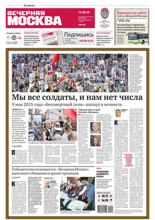 «Вечерняя Москва» — ежедневная российская вечерняя газета, старейшее из вечерних изданий в России, учрежденное в 1923 году. Выходит пять дней в неделю, кроме субботы и воскресенья. Отличается тем, что рассказывает о событиях еще не завершившегося дня. Оперативно освещает хронику и особенности жизни Москвы, охватывает все слои общества и большинство профессиональных и возрастных групп читателей.Издание представлено тремя выпусками – утренним ежедневным, вечерним (выходит три раза в неделю), еженедельным (выходит по четвергам).