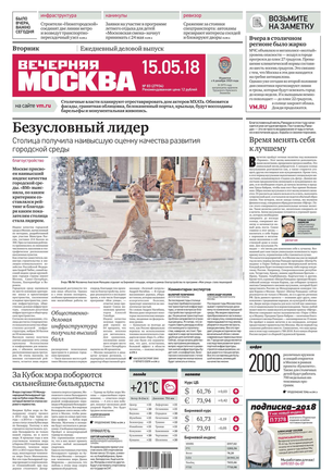 «Вечерняя Москва» — ежедневная российская вечерняя газета, старейшее из вечерних изданий в России, учрежденное в 1923 году. Выходит пять дней в неделю, кроме субботы и воскресенья. Отличается тем, что рассказывает о событиях еще не завершившегося дня. Оперативно освещает хронику и особенности жизни Москвы, охватывает все слои общества и большинство профессиональных и возрастных групп читателей.Издание представлено тремя выпусками – утренним ежедневным, вечерним (выходит три раза в неделю), еженедельным (выходит по четвергам).