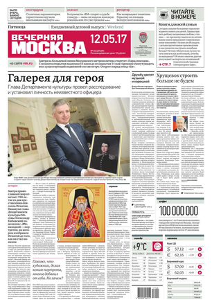 «Вечерняя Москва» — ежедневная российская вечерняя газета, старейшее из вечерних изданий в России, учрежденное в 1923 году. Выходит пять дней в неделю, кроме субботы и воскресенья. Отличается тем, что рассказывает о событиях еще не завершившегося дня. Оперативно освещает хронику и особенности жизни Москвы, охватывает все слои общества и большинство профессиональных и возрастных групп читателей.Издание представлено тремя выпусками – утренним ежедневным, вечерним (выходит три раза в неделю), еженедельным (выходит по четвергам).