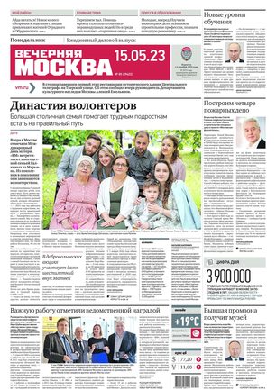 «Вечерняя Москва» — ежедневная российская вечерняя газета, старейшее из вечерних изданий в России, учрежденное в 1923 году. Выходит пять дней в неделю, кроме субботы и воскресенья. Отличается тем, что рассказывает о событиях еще не завершившегося дня. Оперативно освещает хронику и особенности жизни Москвы, охватывает все слои общества и большинство профессиональных и возрастных групп читателей.Издание представлено тремя выпусками – утренним ежедневным, вечерним (выходит три раза в неделю), еженедельным (выходит по четвергам).