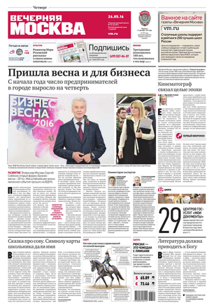«Вечерняя Москва» — ежедневная российская вечерняя газета, старейшее из вечерних изданий в России, учрежденное в 1923 году. Выходит пять дней в неделю, кроме субботы и воскресенья. Отличается тем, что рассказывает о событиях еще не завершившегося дня. Оперативно освещает хронику и особенности жизни Москвы, охватывает все слои общества и большинство профессиональных и возрастных групп читателей.Издание представлено тремя выпусками – утренним ежедневным, вечерним (выходит три раза в неделю), еженедельным (выходит по четвергам).