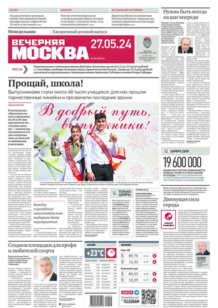«Вечерняя Москва» — ежедневная российская вечерняя газета, старейшее из вечерних изданий в России, учрежденное в 1923 году. Выходит пять дней в неделю, кроме субботы и воскресенья. Отличается тем, что рассказывает о событиях еще не завершившегося дня. Оперативно освещает хронику и особенности жизни Москвы, охватывает все слои общества и большинство профессиональных и возрастных групп читателей.Издание представлено тремя выпусками – утренним ежедневным, вечерним (выходит три раза в неделю), еженедельным (выходит по четвергам).