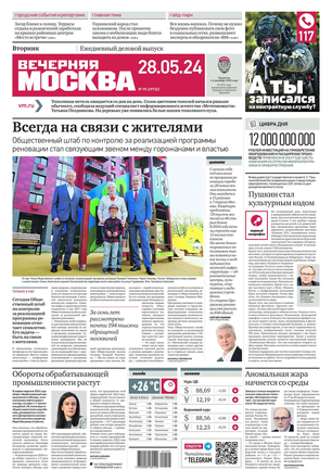 «Вечерняя Москва» — ежедневная российская вечерняя газета, старейшее из вечерних изданий в России, учрежденное в 1923 году. Выходит пять дней в неделю, кроме субботы и воскресенья. Отличается тем, что рассказывает о событиях еще не завершившегося дня. Оперативно освещает хронику и особенности жизни Москвы, охватывает все слои общества и большинство профессиональных и возрастных групп читателей.Издание представлено тремя выпусками – утренним ежедневным, вечерним (выходит три раза в неделю), еженедельным (выходит по четвергам).