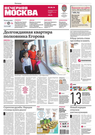 «Вечерняя Москва» — ежедневная российская вечерняя газета, старейшее из вечерних изданий в России, учрежденное в 1923 году. Выходит пять дней в неделю, кроме субботы и воскресенья. Отличается тем, что рассказывает о событиях еще не завершившегося дня. Оперативно освещает хронику и особенности жизни Москвы, охватывает все слои общества и большинство профессиональных и возрастных групп читателей.Издание представлено тремя выпусками – утренним ежедневным, вечерним (выходит три раза в неделю), еженедельным (выходит по четвергам).