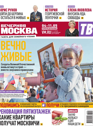 «Вечерняя Москва» — ежедневная российская вечерняя газета, старейшее из вечерних изданий в России, учрежденное в 1923 году. Выходит пять дней в неделю, кроме субботы и воскресенья. Отличается тем, что рассказывает о событиях еще не завершившегося дня. Оперативно освещает хронику и особенности жизни Москвы, охватывает все слои общества и большинство профессиональных и возрастных групп читателей.Издание представлено тремя выпусками – утренним ежедневным, вечерним (выходит три раза в неделю), еженедельным (выходит по четвергам).