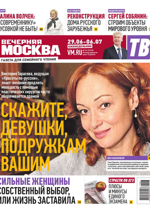 Еженедельный выпуск «Вечерней Москвы» — это значимые события недели, афиша города, новости из сферы отдыха и развлечений, телепрограмма с анонсами и комментариями, авторские колонки журналистов и авторитетные мнения экспертов, детская страничка, специальная рубрика «Золушка», интересные репортажи о необычных судьбах московских жителей, постоянные конкурсы и викторины.