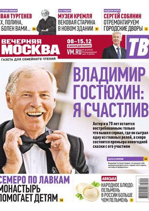 Еженедельный выпуск «Вечерней Москвы» — это значимые события недели, афиша города, новости из сферы отдыха и развлечений, телепрограмма с анонсами и комментариями, авторские колонки журналистов и авторитетные мнения экспертов, детская страничка, специальная рубрика «Золушка», интересные репортажи о необычных судьбах московских жителей, постоянные конкурсы и викторины.