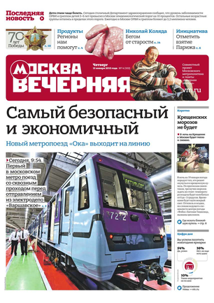 «Вечерняя Москва» — ежедневная российская вечерняя газета, старейшее из вечерних изданий в России, учрежденное в 1923 году. Выходит пять дней в неделю, кроме субботы и воскресенья. Отличается тем, что рассказывает о событиях еще не завершившегося дня. Оперативно освещает хронику и особенности жизни Москвы, охватывает все слои общества и большинство профессиональных и возрастных групп читателей.Издание представлено тремя выпусками – утренним ежедневным, вечерним (выходит три раза в неделю), еженедельным (выходит по четвергам).