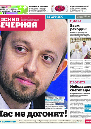 «Вечерняя Москва» — ежедневная российская вечерняя газета, старейшее из вечерних изданий в России, учрежденное в 1923 году. Выходит пять дней в неделю, кроме субботы и воскресенья. Отличается тем, что рассказывает о событиях еще не завершившегося дня. Оперативно освещает хронику и особенности жизни Москвы, охватывает все слои общества и большинство профессиональных и возрастных групп читателей.Издание представлено тремя выпусками – утренним ежедневным, вечерним (выходит три раза в неделю), еженедельным (выходит по четвергам).