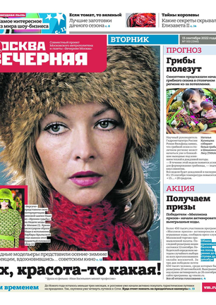 «Вечерняя Москва» — ежедневная российская вечерняя газета, старейшее из вечерних изданий в России, учрежденное в 1923 году. Выходит пять дней в неделю, кроме субботы и воскресенья. Отличается тем, что рассказывает о событиях еще не завершившегося дня. Оперативно освещает хронику и особенности жизни Москвы, охватывает все слои общества и большинство профессиональных и возрастных групп читателей.Издание представлено тремя выпусками – утренним ежедневным, вечерним (выходит три раза в неделю), еженедельным (выходит по четвергам).