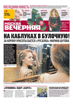 «Вечерняя Москва» — ежедневная российская вечерняя газета, старейшее из вечерних изданий в России, учрежденное в 1923 году. Выходит пять дней в неделю, кроме субботы и воскресенья. Отличается тем, что рассказывает о событиях еще не завершившегося дня. Оперативно освещает хронику и особенности жизни Москвы, охватывает все слои общества и большинство профессиональных и возрастных групп читателей.Издание представлено тремя выпусками – утренним ежедневным, вечерним (выходит три раза в неделю), еженедельным (выходит по четвергам).