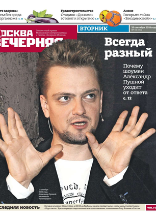 «Вечерняя Москва» — ежедневная российская вечерняя газета, старейшее из вечерних изданий в России, учрежденное в 1923 году. Выходит пять дней в неделю, кроме субботы и воскресенья. Отличается тем, что рассказывает о событиях еще не завершившегося дня. Оперативно освещает хронику и особенности жизни Москвы, охватывает все слои общества и большинство профессиональных и возрастных групп читателей.Издание представлено тремя выпусками – утренним ежедневным, вечерним (выходит три раза в неделю), еженедельным (выходит по четвергам).