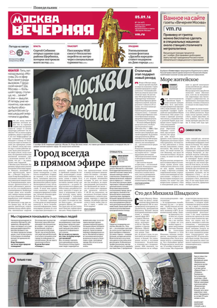 «Вечерняя Москва» — ежедневная российская вечерняя газета, старейшее из вечерних изданий в России, учрежденное в 1923 году. Выходит пять дней в неделю, кроме субботы и воскресенья. Отличается тем, что рассказывает о событиях еще не завершившегося дня. Оперативно освещает хронику и особенности жизни Москвы, охватывает все слои общества и большинство профессиональных и возрастных групп читателей.Издание представлено тремя выпусками – утренним ежедневным, вечерним (выходит три раза в неделю), еженедельным (выходит по четвергам).