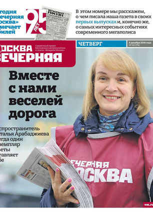 «Вечерняя Москва» — ежедневная российская вечерняя газета, старейшее из вечерних изданий в России, учрежденное в 1923 году. Выходит пять дней в неделю, кроме субботы и воскресенья. Отличается тем, что рассказывает о событиях еще не завершившегося дня. Оперативно освещает хронику и особенности жизни Москвы, охватывает все слои общества и большинство профессиональных и возрастных групп читателей.Издание представлено тремя выпусками – утренним ежедневным, вечерним (выходит три раза в неделю), еженедельным (выходит по четвергам).