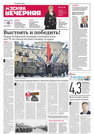 Еженедельный выпуск «Вечерней Москвы» — это значимые события недели, афиша города, новости из сферы отдыха и развлечений, телепрограмма с анонсами и комментариями, авторские колонки журналистов и авторитетные мнения экспертов, детская страничка, специальная рубрика «Золушка», интересные репортажи о необычных судьбах московских жителей, постоянные конкурсы и викторины.