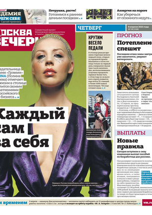 «Вечерняя Москва» — ежедневная российская вечерняя газета, старейшее из вечерних изданий в России, учрежденное в 1923 году. Выходит пять дней в неделю, кроме субботы и воскресенья. Отличается тем, что рассказывает о событиях еще не завершившегося дня. Оперативно освещает хронику и особенности жизни Москвы, охватывает все слои общества и большинство профессиональных и возрастных групп читателей.Издание представлено тремя выпусками – утренним ежедневным, вечерним (выходит три раза в неделю), еженедельным (выходит по четвергам).