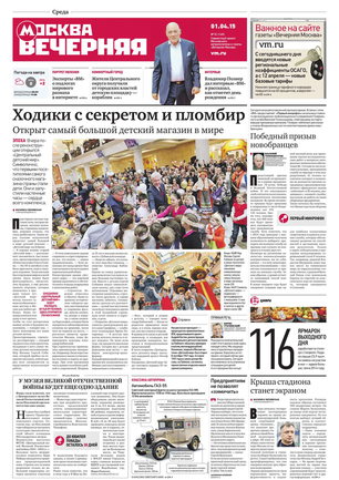 «Вечерняя Москва» — ежедневная российская вечерняя газета, старейшее из вечерних изданий в России, учрежденное в 1923 году. Выходит пять дней в неделю, кроме субботы и воскресенья. Отличается тем, что рассказывает о событиях еще не завершившегося дня. Оперативно освещает хронику и особенности жизни Москвы, охватывает все слои общества и большинство профессиональных и возрастных групп читателей.Издание представлено тремя выпусками – утренним ежедневным, вечерним (выходит три раза в неделю), еженедельным (выходит по четвергам).