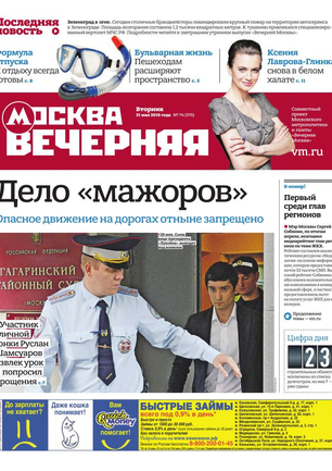 «Вечерняя Москва» — ежедневная российская вечерняя газета, старейшее из вечерних изданий в России, учрежденное в 1923 году. Выходит пять дней в неделю, кроме субботы и воскресенья. Отличается тем, что рассказывает о событиях еще не завершившегося дня. Оперативно освещает хронику и особенности жизни Москвы, охватывает все слои общества и большинство профессиональных и возрастных групп читателей.Издание представлено тремя выпусками – утренним ежедневным, вечерним (выходит три раза в неделю), еженедельным (выходит по четвергам).