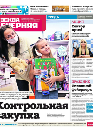 «Вечерняя Москва» — ежедневная российская вечерняя газета, старейшее из вечерних изданий в России, учрежденное в 1923 году. Выходит пять дней в неделю, кроме субботы и воскресенья. Отличается тем, что рассказывает о событиях еще не завершившегося дня. Оперативно освещает хронику и особенности жизни Москвы, охватывает все слои общества и большинство профессиональных и возрастных групп читателей.Издание представлено тремя выпусками – утренним ежедневным, вечерним (выходит три раза в неделю), еженедельным (выходит по четвергам).