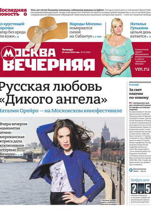 «Вечерняя Москва» — ежедневная российская вечерняя газета, старейшее из вечерних изданий в России, учрежденное в 1923 году. Выходит пять дней в неделю, кроме субботы и воскресенья. Отличается тем, что рассказывает о событиях еще не завершившегося дня. Оперативно освещает хронику и особенности жизни Москвы, охватывает все слои общества и большинство профессиональных и возрастных групп читателей.Издание представлено тремя выпусками – утренним ежедневным, вечерним (выходит три раза в неделю), еженедельным (выходит по четвергам).