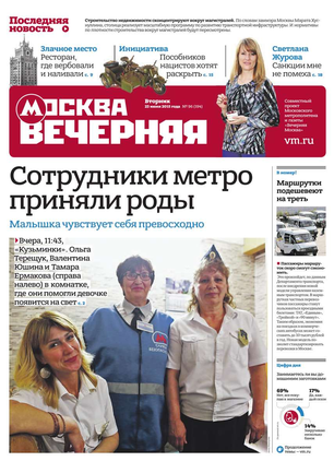 «Вечерняя Москва» — ежедневная российская вечерняя газета, старейшее из вечерних изданий в России, учрежденное в 1923 году. Выходит пять дней в неделю, кроме субботы и воскресенья. Отличается тем, что рассказывает о событиях еще не завершившегося дня. Оперативно освещает хронику и особенности жизни Москвы, охватывает все слои общества и большинство профессиональных и возрастных групп читателей.Издание представлено тремя выпусками – утренним ежедневным, вечерним (выходит три раза в неделю), еженедельным (выходит по четвергам).