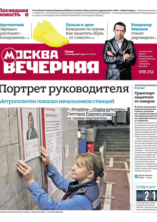 «Вечерняя Москва» — ежедневная российская вечерняя газета, старейшее из вечерних изданий в России, учрежденное в 1923 году. Выходит пять дней в неделю, кроме субботы и воскресенья. Отличается тем, что рассказывает о событиях еще не завершившегося дня. Оперативно освещает хронику и особенности жизни Москвы, охватывает все слои общества и большинство профессиональных и возрастных групп читателей.Издание представлено тремя выпусками – утренним ежедневным, вечерним (выходит три раза в неделю), еженедельным (выходит по четвергам).