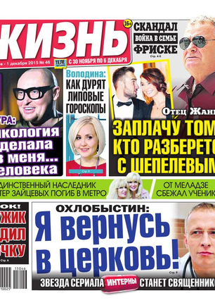 Еженедельная газета, предназначенная для семейного чтения. Основные рубрики: самые скандальные и интересные события прошедшей недели, политический комментарий Леонида Шахова, пикантные истории из звездной жизни, советы профессионального психолога, действенные рецепты здоровья, гороскоп, кроссворд, конкурсы, сканворды, розыгрыши билетов в кинотеатры и множество других призов. Приложения к газете «Жизнь»: «Телеэкран» - телепрограмма с подробными анонсами кино и сериалов, «Овертайм» - спортивное обозрение.