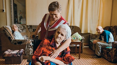 Дом престарелых похож на обычный жилой — он почти ничем не выдает в себе какое-то специальное учреждение. Девять спален, кухня, большая гостиная с телевизором, три крыльца, прихожая, два кота, кролик, пес и огород. С порога пахнет куриным бульоном. Кабинет Татьяны — самый близкий к черному входу — вмещает и склад, и ординаторскую, и приемную. Дом рассчитан на 25 человек, бабушки и дедушки живут в скромных комнатах по двое и трое; четыре места пока свободны. Родственники приезжают навестить своих старичков и шутят: «Куда же мы отправимся в старости, если места уже мало?». На такой юмор способны люди, примирившиеся со своим чувством вины.