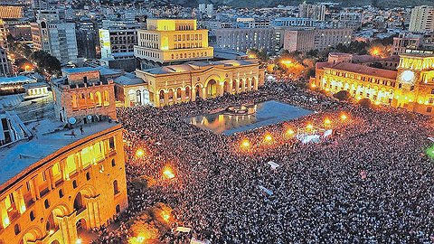 По официальной версии, «абрикосовую» революцию в Армении сделали бедные люди. Выступившие «массовкой». 150 тысяч человек на площади Республики (при населении всей Армении всего 3 миллиона) снесли со своего поста бывшего президента Сержа Саргсяна. Такие толпы полиция не разгоняет, она к ним присоединяется. Всеобщее перекрытие дорог в стране 2 мая, после того как лидера протестов Никола Пашиняна прокатили с креслом премьера на голосовании в парламенте. Полиция даже не пыталась убирать пикеты, а кое-где тусовалась и пела вместе с восставшими.