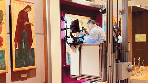 Напомним, что трещина — застарелая и одна из самых опасных проблем памятника, с ней борются еще с 1929 года (тогда «Троица» поступила в Третьяковку). Длина трещины более метра. В этом месте доски, на которых написаны икона, прилегают неплотно, они подвижны. За последний год расстояние между ними увеличилось — в одном из контрольных участков — на 10 мм, в другом — на 5 мм. Соответственно, паволока и краска вокруг трещины отходят все сильней. Последние детальные обследования проводились с помощью 3D-сканирования и макросъемки, что позволяет фиксировать проблемные зоны с максимальной точностью. И, несмотря на сделанные в августе, а потом в декабре укрепления опасных мест, состояние иконы ухудшается.