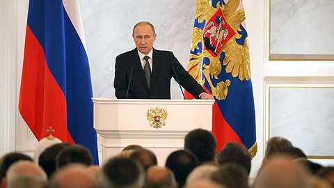 Глава государства в одиннадцатый раз выступил с посланием Федеральному собранию. Речь президента продолжалась 1 час и 10 мин, и 39 раз звучали аплодисменты. Овации вызвали, в частности, слова о воссоединении Крыма и обеспечении суверенитета страны. С большим воодушевлением зал встретил и предложенные меры по развитию экономики и бизнеса - стабильности налогового режима, облегчению условий для бизнеса, развитии моногородов. Предложения по развитию социальной сферы также были единогласно поддержаны аудиторией.