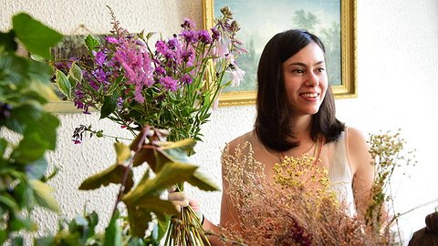 С цветочницей Соней Польской мы познакомились в конце лета, когда бизнес девушки в буквальном смысле процветал. Все дело в том, что Соня делает букеты из полевых цветов, которые затем развозит на велосипеде заказчикам.