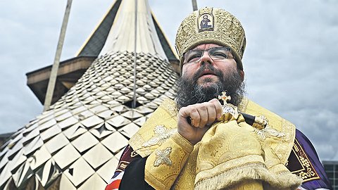 На территории храма собрались около ста человек — празднично одетых прихожан. Всех объединяет торжество — 12 июля Русская православная церковь отмечает день святых апостолов Петра и Павла. В этот день архиепископ Егорьевский Матфей и совершает чин освящения. После чего с помощью подъемного крана на специальных стропах сверкающий купол с крестом занимает свое место.