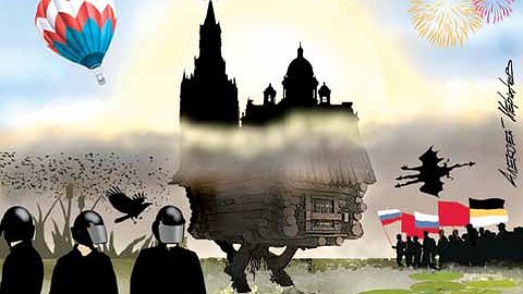 Вот у меня была Родина. А сейчас за окном все та же Москва, поезда все так же по ночам шумят, такая же милая осень, но я живу Бог знает где. С запада — бунт, на юге — война и революция, на востоке попадали на берег морские звезды, с севера тянет соляркой и покинутыми селениями. Непонятно даже, когда я живу, в каком веке. Мимо стоящей на Таганке очереди к мощам едут небинарные транс-активисты на электрическом колесе, школьники с американским телефоном в кармане падают в обморок от патриотических чувств на линейке, под пролетарскими кремлевскими звездами едят рябчиков буржуи… Путаница похлеще, чем у Чуковского. Один только Владимир Владимирович вносит ясность. Вот на прошлой неделе произнес честные слова, но тоскливые, как квашеная капуста.