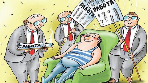 Под гильотину общественного мнения угодили и государственные центры занятости населения (ЦЗН). Глава конкурирующей фирмы Алексей Захаров (он возглавляет частную компанию «Суперджоб», также занимающуюся трудоустройством) заявил, что на 1000 сотрудников государственных центров приходится в год всего 50 трудоустроенных. Получается где-то один в неделю. То есть тысяча человек, это на минуточку, по численности хорошо укомплектованная школа, и вот вся эта школа от первоклашек до усатых выпускников всю неделю гоняют одного бедолагу, чтобы куда-нибудь его приткнуть. Их — тысяча, он — один, и всю неделю, с 9 утра до 6 вечера, исключая обеденный перерыв. Представили? Поверили? Я — да, представил. Нет, не поверил. Слишком напоминает карикатуру времен журнала «Крокодил».