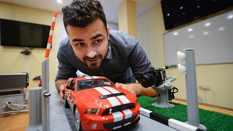 В их лаборатории все, как в детских мечтах — длинная дорога, шлагбаумы и набор разных машин: красная спортивная легковушка, зеленые грузовик и джип, желтая бетономешалка. Однако это не игра — молодые ученые проверяют, как срабатывают камеры и инженерная система в целом, может ли она распознавать тип машины.