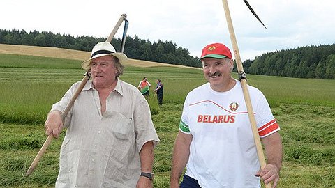 Французский актер c российским паспортом Жерар Депардье прилетел рейсом авиакомпании "Белавиа" в Беларусь. Цель визита 66-летнего артиста в Минск: обсуждение съемок фильма "Нормандия - Неман", над производством которого сейчас работают киношники из Беларуси, Франции и России. А заодно Депардье взял мастер-класс у главы Беларуси по косьбе травы.